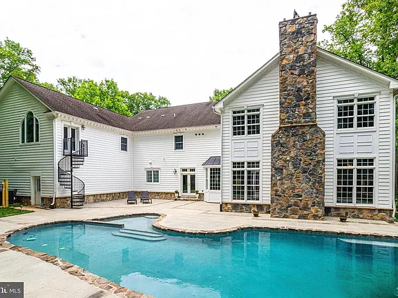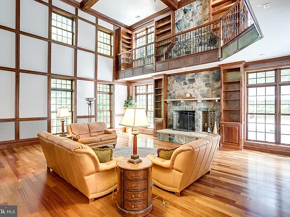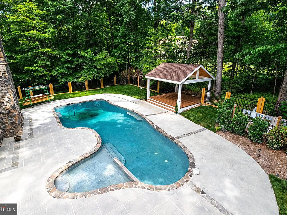 Custom Built Home on 5 Stunning Acres Featuring over 9000 Finished Square Feet! Set at the end of a cul-de-sac, at the end of a winding driveway, this lovely home boasts 6 Bedrooms (7th is available at Purchaser's request), 7 1/2 bathrooms on 3 Finished Levels. The Main Level Bedroom is Handicap Ready - Doors and Roll In Shower! Enjoy both a 2-Car Attached Garage and Separate Detached Garage with 2 additional parking spaces and tons of additional storage. Built for large family and social gatherings, the wrap-around front porch welcomes all guests with stunning, custom milled hardwood floors. The main level features a gourmet kitchen with huge center island, granite countertops, high end appliances and fireplace. A stunning 2-story family room with stone masonry fireplace, 2nd story walk-around balcony and built-in bookcase will impress and inspire. Formal Living and Dining Areas are lavishly appointed with the finest wood-working details. A large office enjoys it's privacy in the front corner of the home and enjoys 2 walls of windows overlooking the porch and wooded lot. The upper level is home to 4 very large and impressive bedrooms including the master suite and sitting room with private balcony and circular staircase to the patio below. The master bathroom is close to completion and awaits it's new owner's choice of vanities. The lower level features gigantic family room with fireplace, gigantic bar with multi stool seating, pool/game table area, 6th bedroom and optional 7th bedroom/craft room/2nd office. The rear yard is to die for! Your family and guests will enjoy an oversized black bottom pool on a raft or with a cool drink in hand! Fenced and gated, the pool house gazebo is close to completion and adds a final touch of paradise to this property. Energy efficient and custom built with incredible attention to every detail, this home will impress the most savvy of buyers.